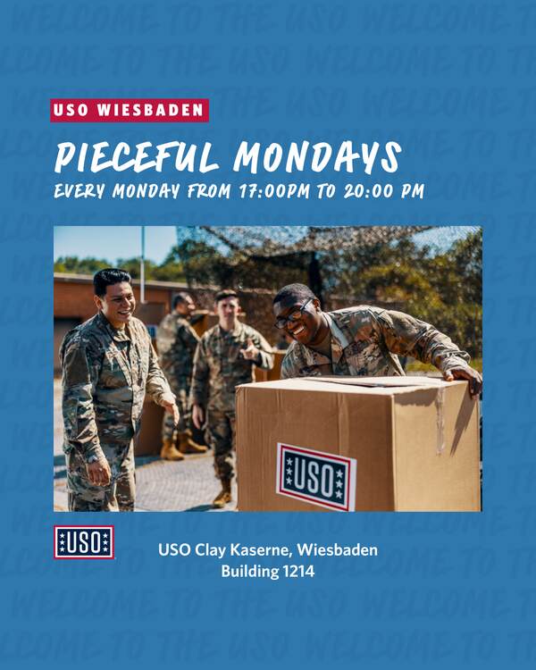 Start your week the perfect way—relaxing, satisfying, and a little bit fun! Join us at the USO Center for Mellow Mondays, where you can build puzzles at your own pace. Whether you want some quiet solo time to disconnect from the weekend noise or team up with friends to tackle a challenging puzzle together, this is the ultimate way to recharge.